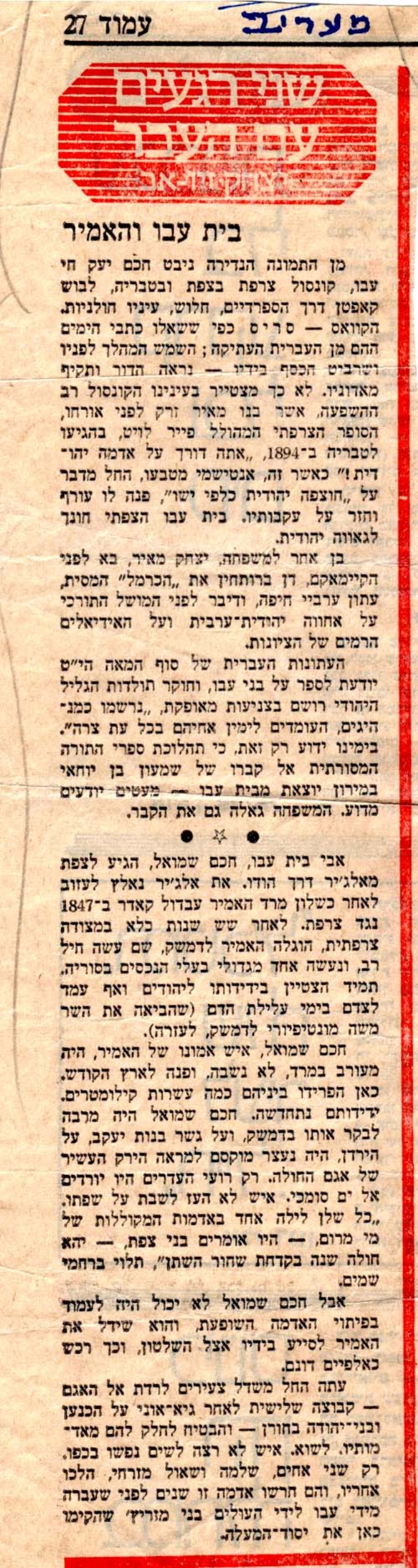 See also “The Abbo Family and the Emir,” by Yitzhak Ziv-Av, in Ma’ariv.