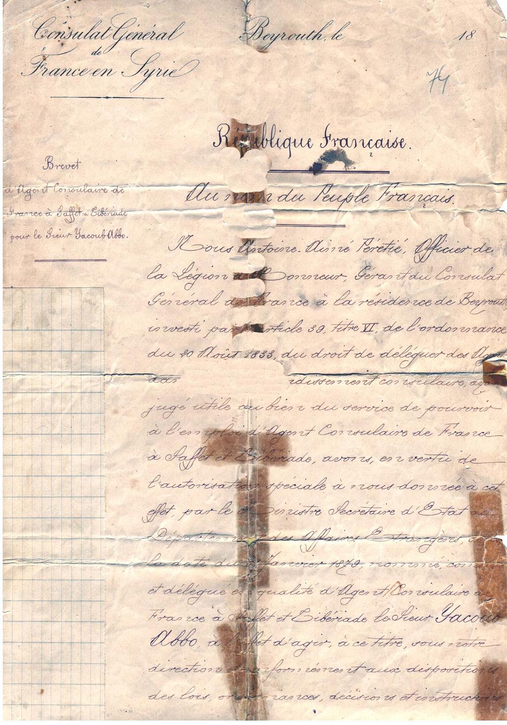 His first act as consul was to gather the lion’s share of the Safed and Tiberias Jewish communities under the protection of the French government, by registering them as subjects. As foreign subjects they were accorded extra privileges, and the Abbo house quickly became a refuge for all the harassed and persecuted, regardless of religion and nationality. The Ottoman authorities never dared enter, because of diplomatic immunity.